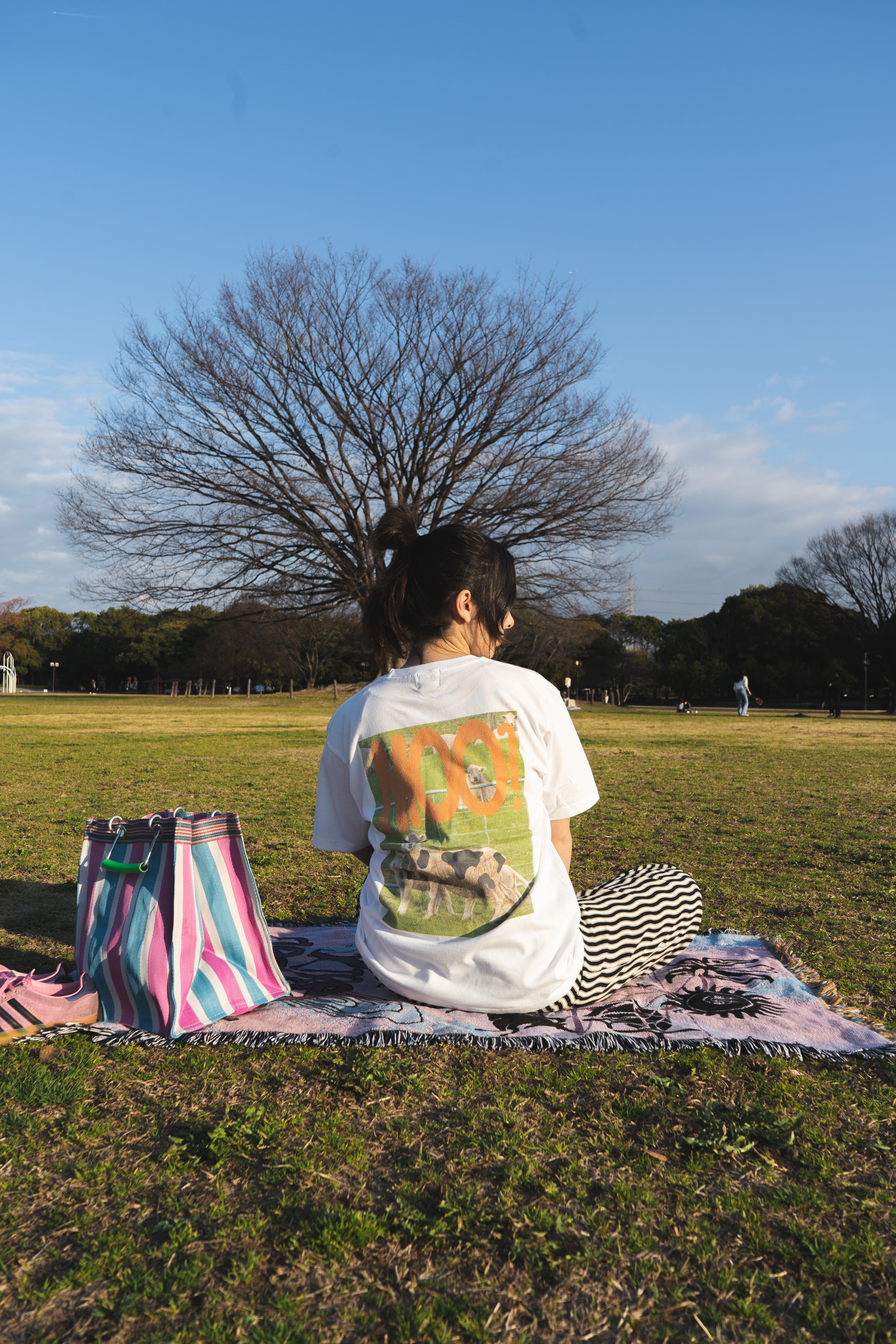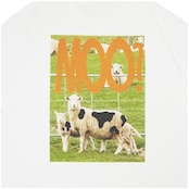 デザイナー自身がニュージーランドで撮影した羊の写真をモチーフに作られた一着。リアルとユーモアのミックスが、じわじわとクセになる存在感。ボディはしっかりとした生地で一枚で着ても様になる安心感のある厚み。