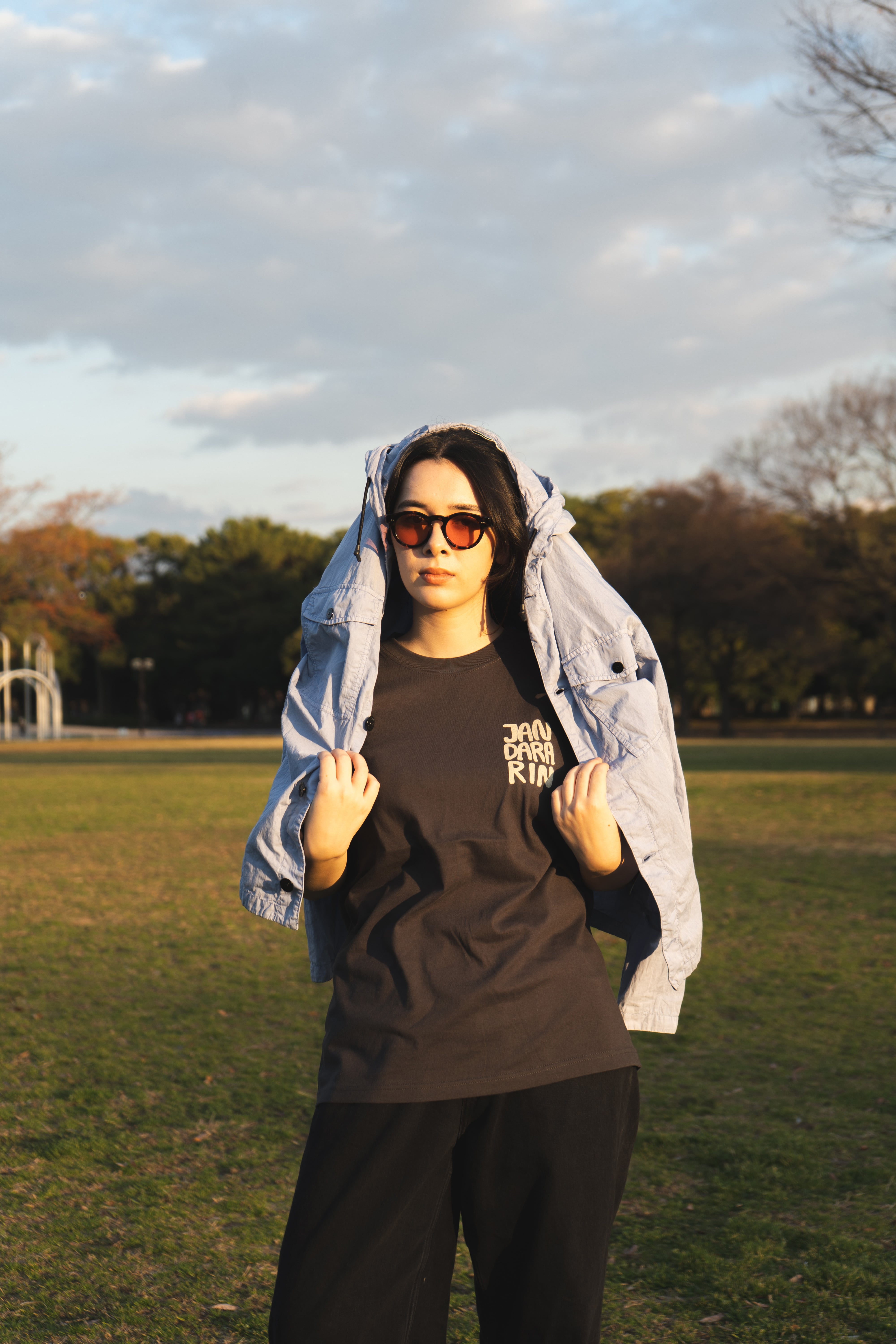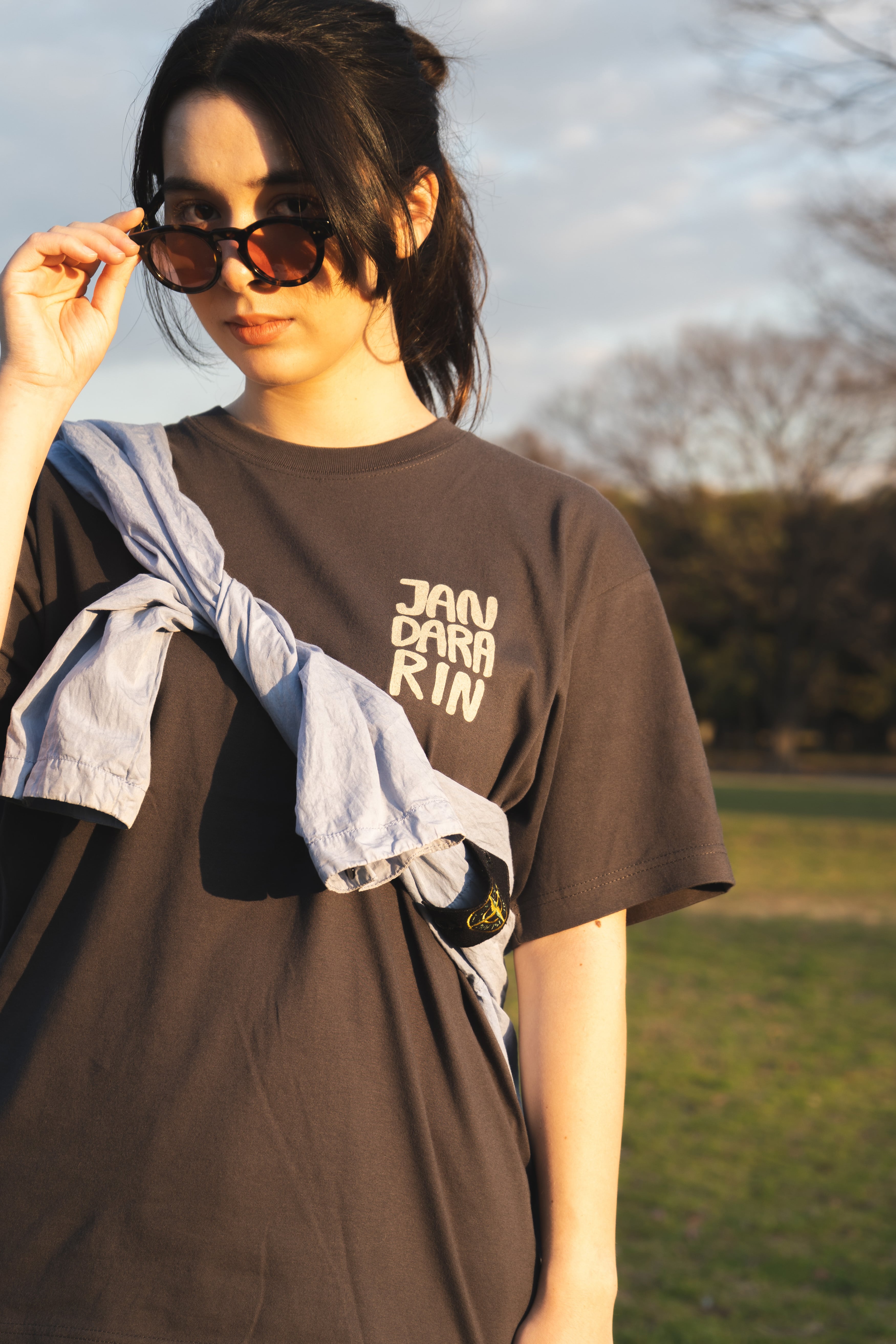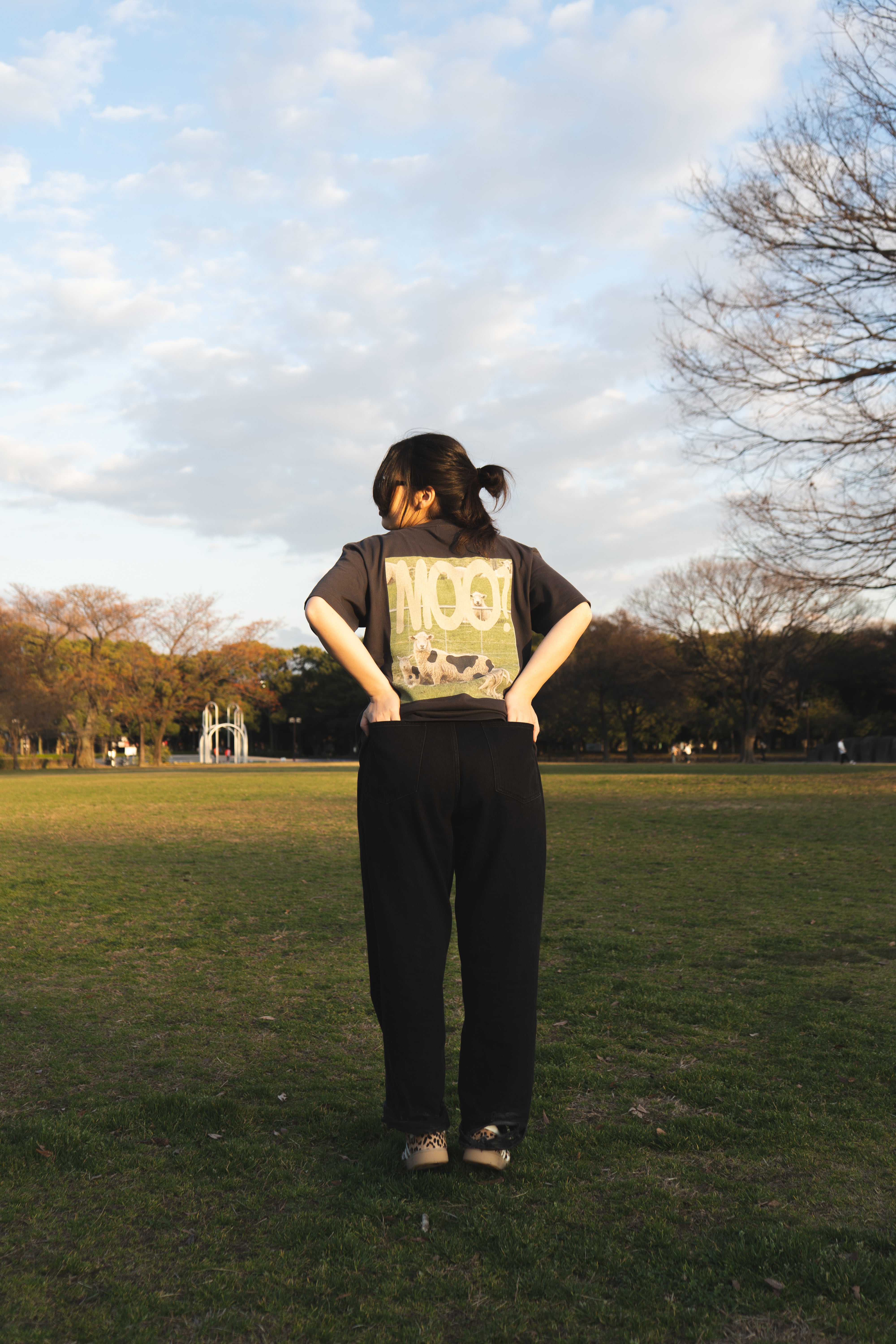 デザイナー自身がニュージーランドで撮影した羊の写真をモチーフに作られた一着。リアルとユーモアのミックスが、じわじわとクセになる存在感。ボディはしっかりとした生地で一枚で着ても様になる安心感のある厚み。